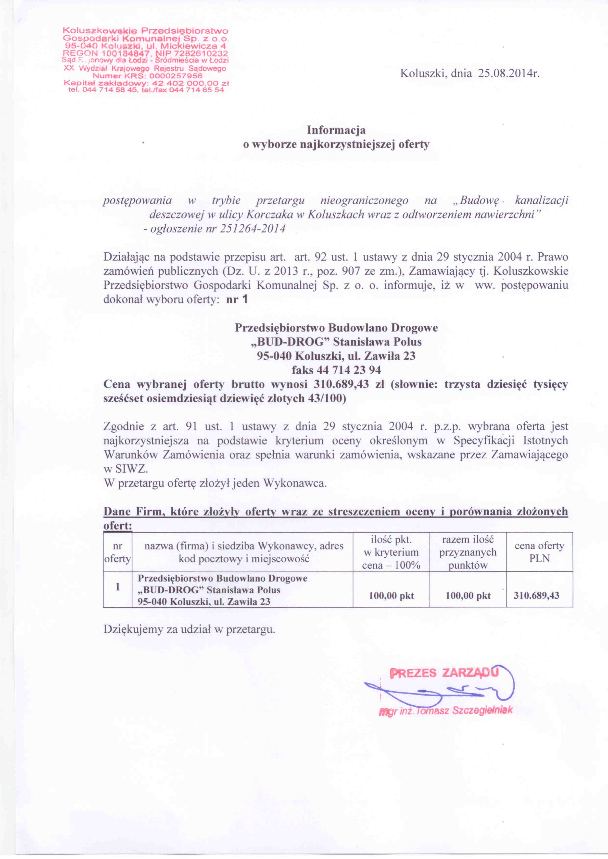 Numer og艂oszenia: 251264 - 2014; data zamieszczenia: 28.07.2014