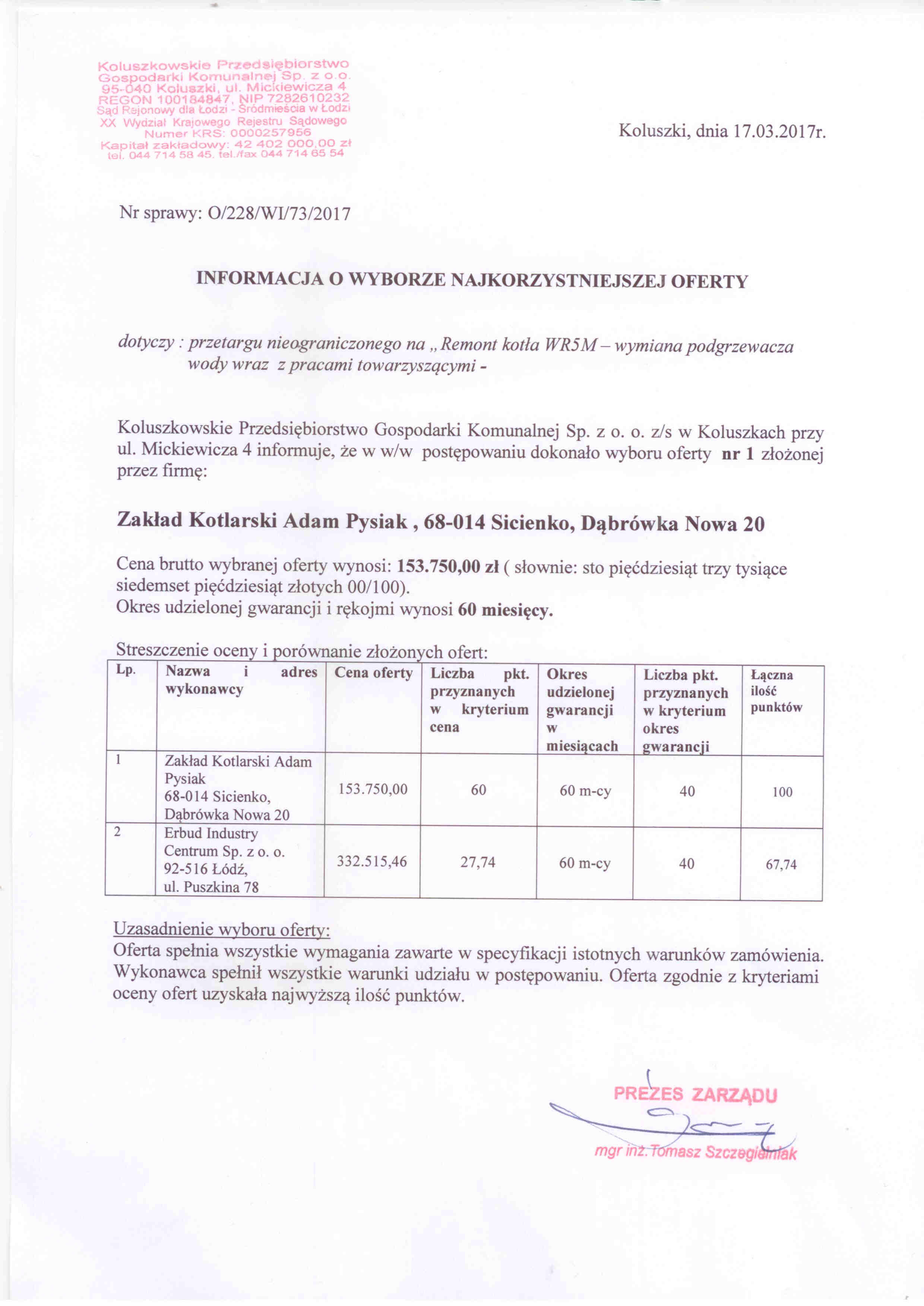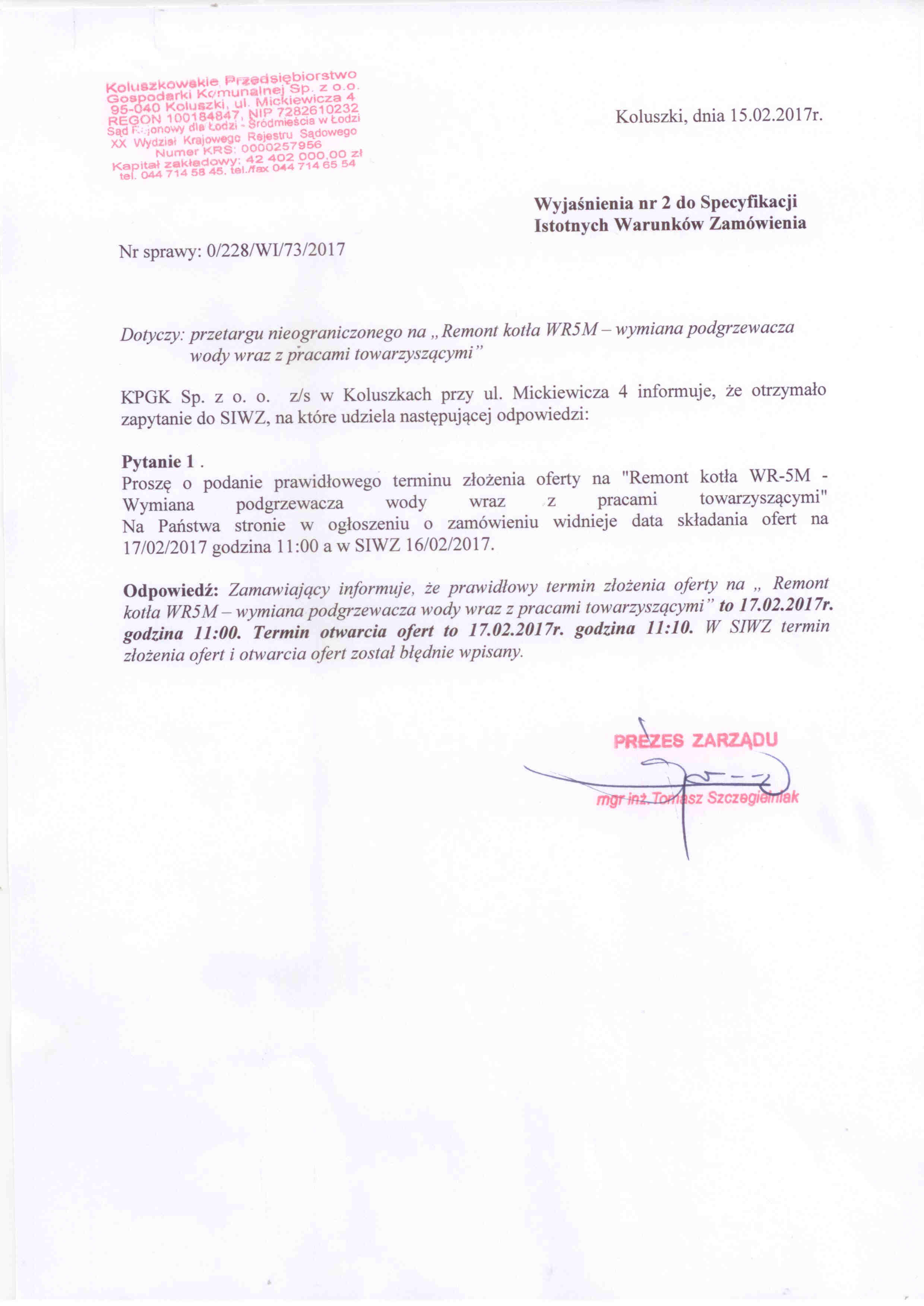 Numer og艂oszenia: 20318 - 2017; data zamieszczenia: 06.02.2017