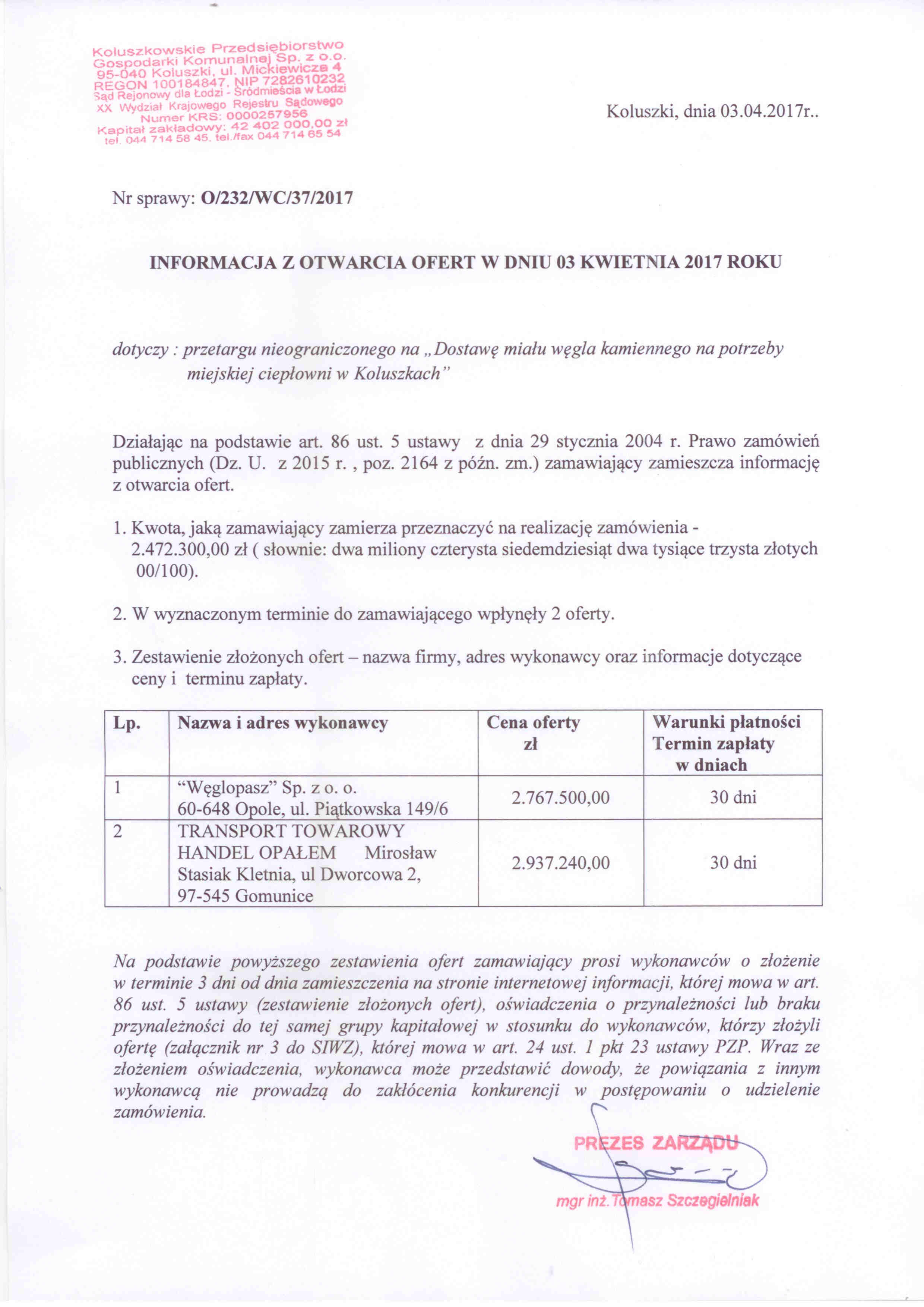 | Typ | Rozmiar | Pobierz | Komentarz | Data dodania | Licznik | .PDF | 137.9 KB | POBIERZ | Og艂oszenie o zam贸wieniu | 2017-02-23 14:00:57 | 341 | ? | 313.5 KB | POBIERZ | SIWZ | 2017-02-23 14:01:22 | 323 | ? | 24 KB | POBIERZ | Za艂膮cznik nr 1 | 2017-02-23 14:01:49 | 300 | ? | 19.5 KB | POBIERZ | Za艂膮cznik nr 2 | 2017-02-23 14:02:25 | 337 | ? | 128.5 KB | POBIERZ | Za艂膮cznik nr 3 - JEDZ | 2017-02-23 14:02:55 | 312 | .PDF | 1281.5 KB | POBIERZ | Za艂膮cznik nr 4 - Instr. do JEDZA | 2017-02-23 14:03:23 | 325 | .PDF | 742.6 KB | POBIERZ | Za艂膮cznik nr 5 | 2017-02-23 14:04:09 | 339 | ? | 47.5 KB | POBIERZ | Za艂膮cznik nr 6 | 2017-02-23 14:04:39 | 298 | ? | 18.5 KB | POBIERZ | Za艂膮cznik nr 7 | 2017-02-23 14:04:57 | 332 | ? | 60.5 KB | POBIERZ | Za艂膮cznik nr 8-wz贸r umowy.doc | 2017-02-23 14:05:18 | 325 | graf. | 336 KB | POBIERZ | Wyja艣nienia nr 1 | 2017-03-13 14:38:17 | 328 | graf. | 401.1 KB | POBIERZ | Informacja z otwarcia ofert | 2017-04-03 14:54:53 | 327 | graf. | 122.8 KB | POBIERZ | OG艁OSZENIE O UNIEWA呕NIENIU PRZETARGU NIEOGRANICZONEGO | 2017-05-12 12:57:19 | 294 |